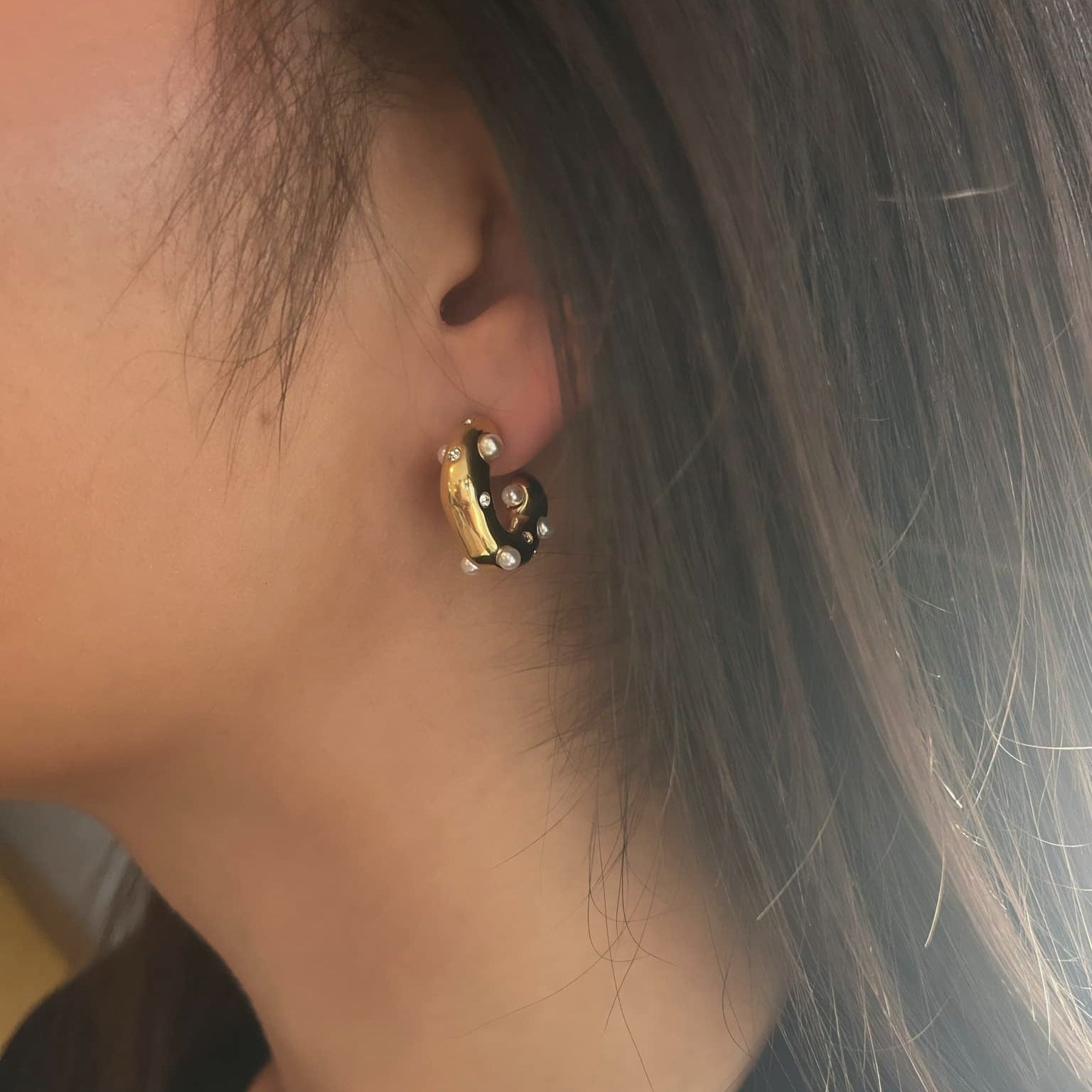Mindre halv-hoops med vackra detailjer i form av pärlor och cubic zirconia stenar.