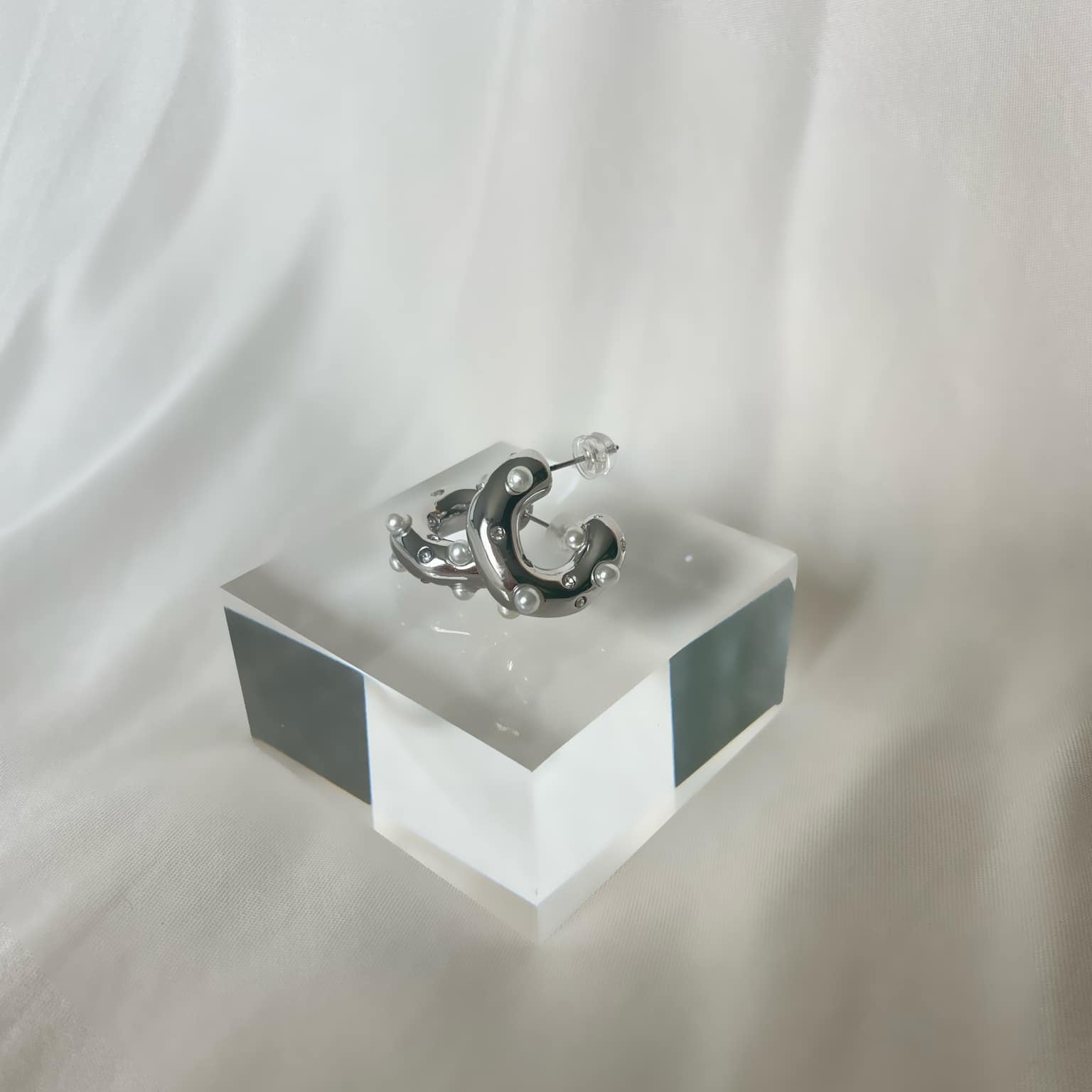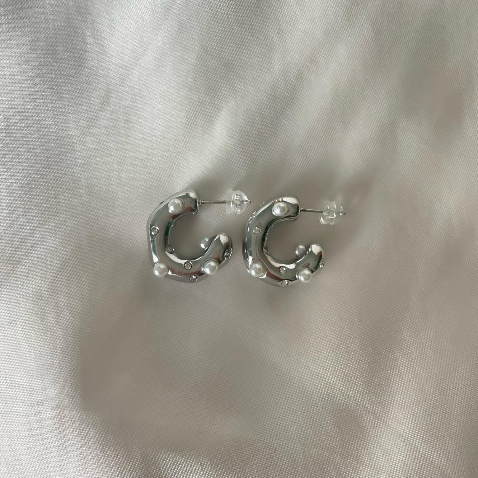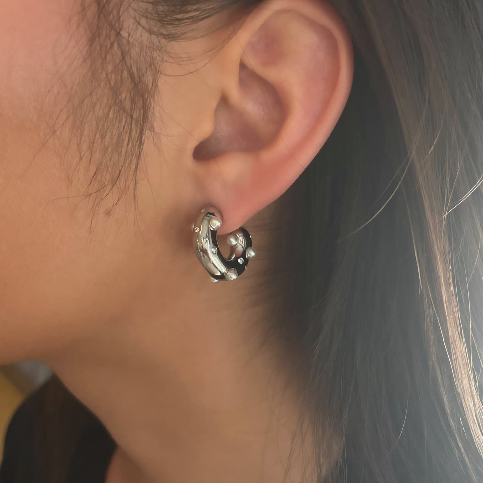 Mindre halv-hoops med vackra detailjer i form av pärlor och cubic zirconia stenar.