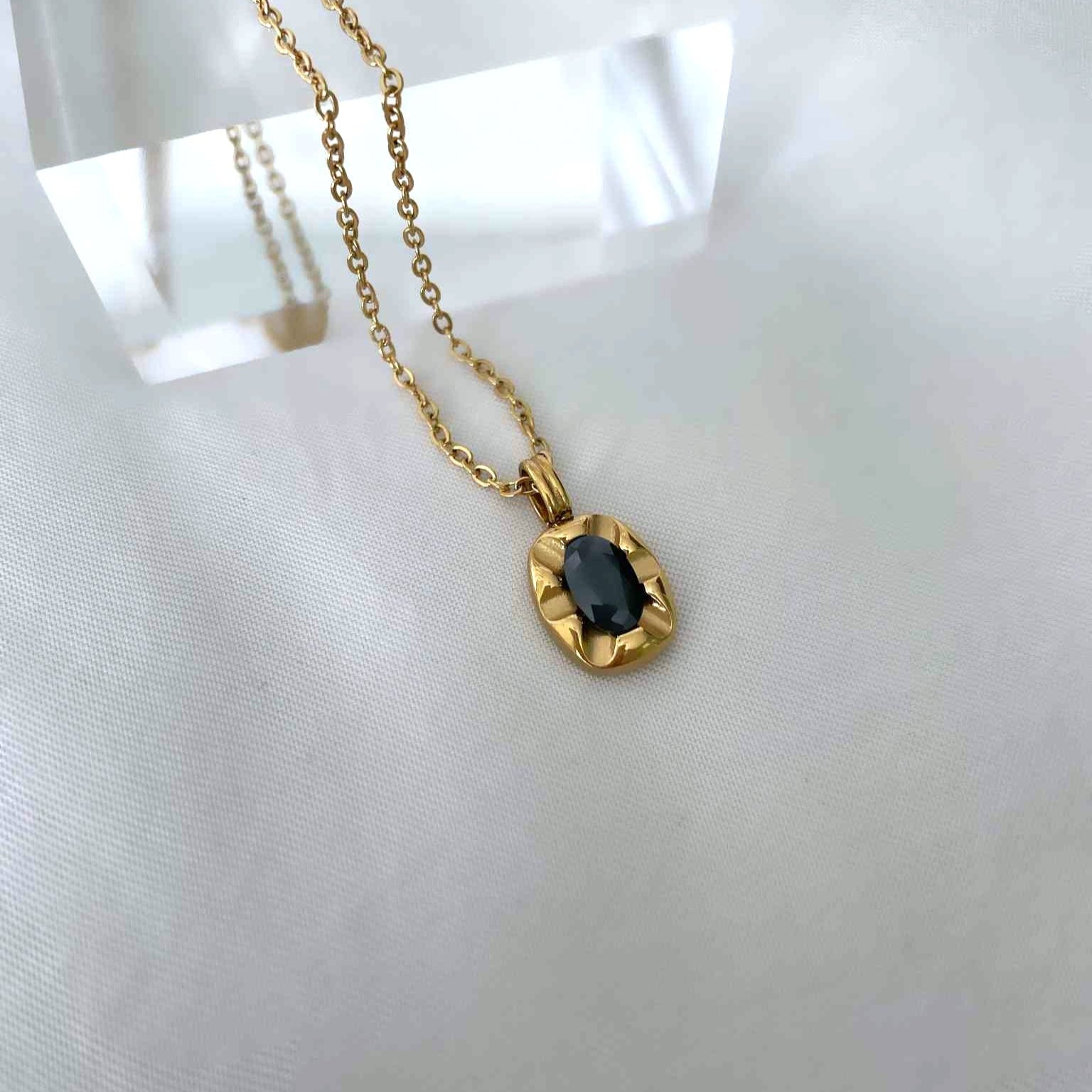 Berlock halsband med en svart Cubic Zirconia, tidlös och klassisk oval design på berlocket. Vacker att kombinera med andra halsband.