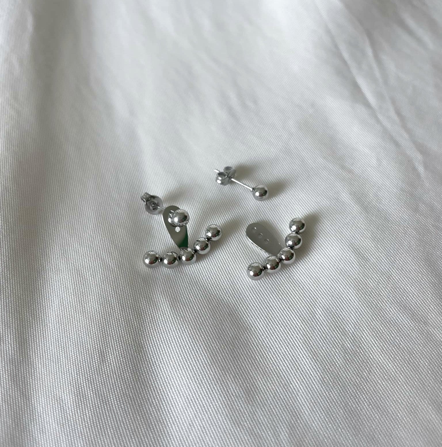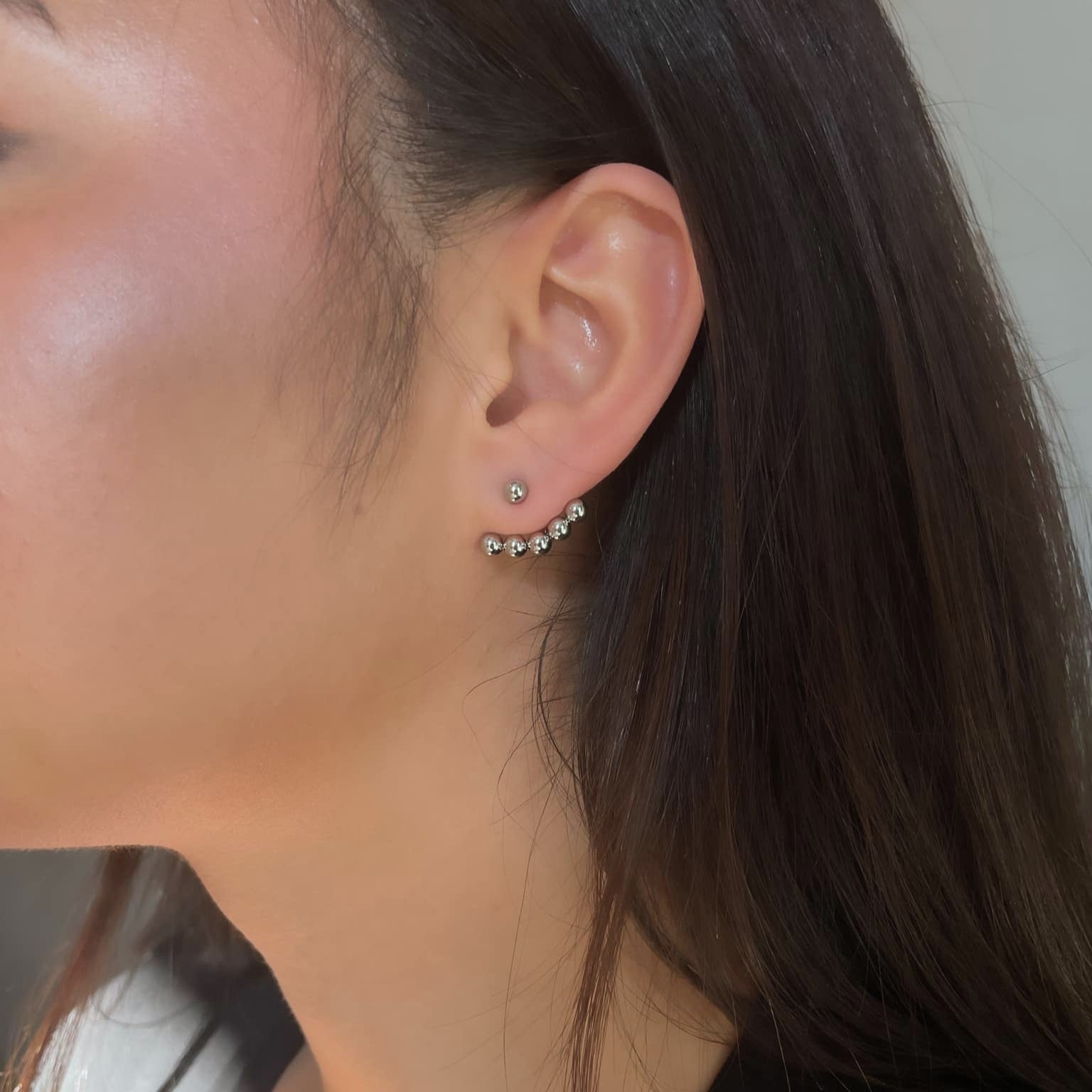 Stilrena stift örhängen med detaljer som ger illusionen av en svävande pärlrad under örat.