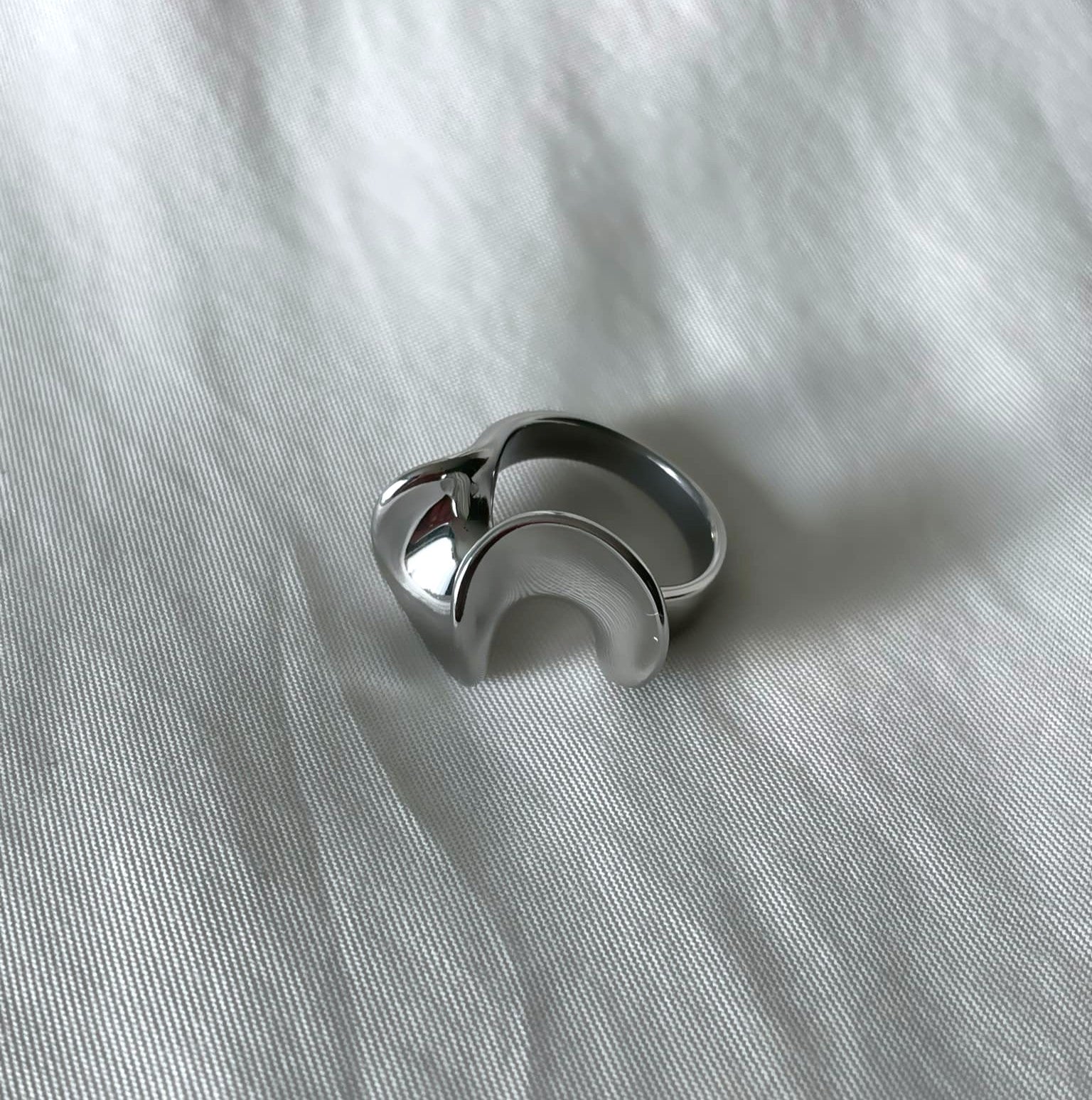 Asymmetrisk ring i silver som syns